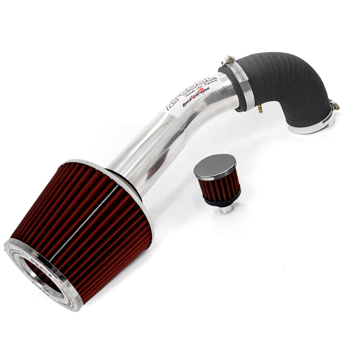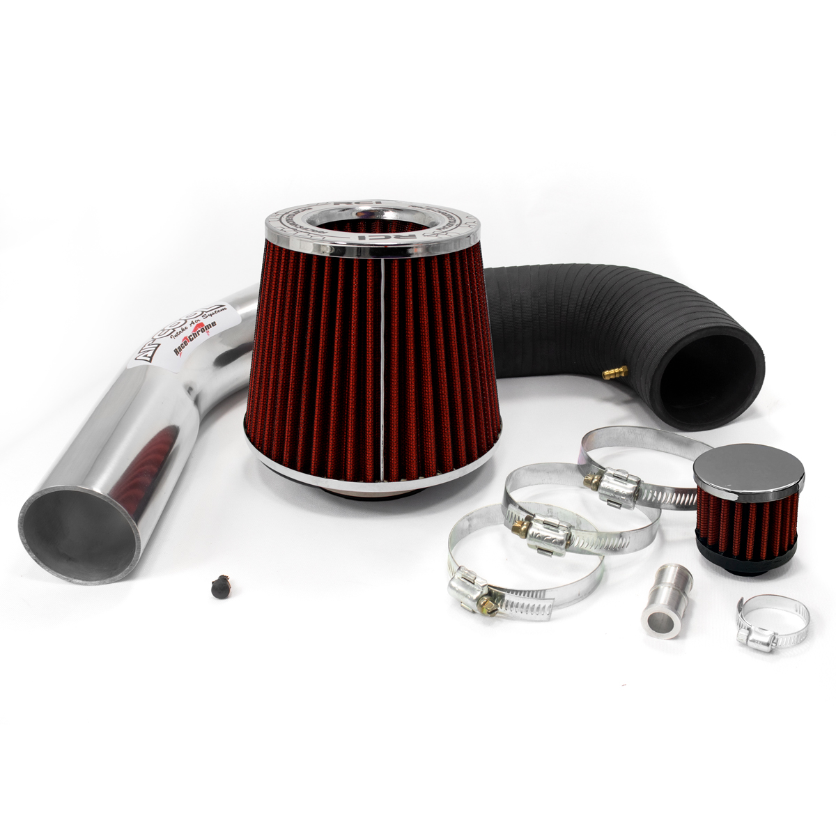 O kit Air Cool modelo RC211 acompanha duto para indução de ar frio com 2″1/2 de diâmetro, mangotes, niple de encaixe de mangueira, abraçadeiras, kit de filtro para saída de respiro de óleo e filtro de ar esportivo DUPLO FLUXO.