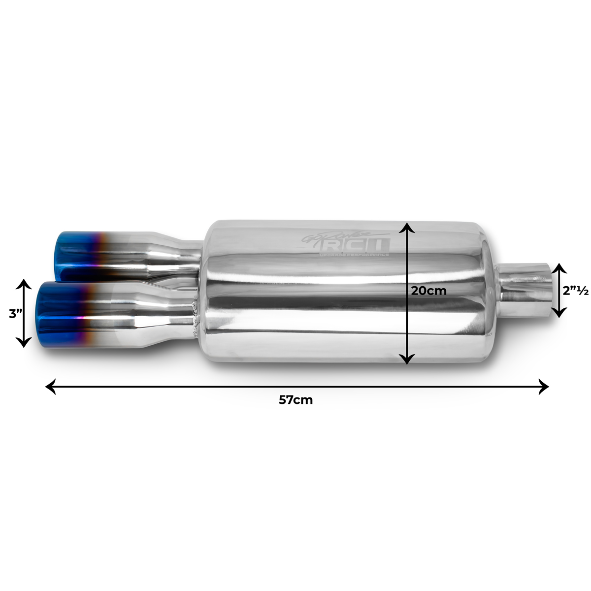 O grande diferencial do RCI253FL está nas duas ponteiras de 3 polegadas com acabamento Flame, também conhecido como acabamento queimado. Esse efeito térmico cria a coloração azulada nas extremidades, muito utilizada em carros de performance e projetos esportivos, trazendo um visual mais agressivo e exclusivo à traseira do veículo.